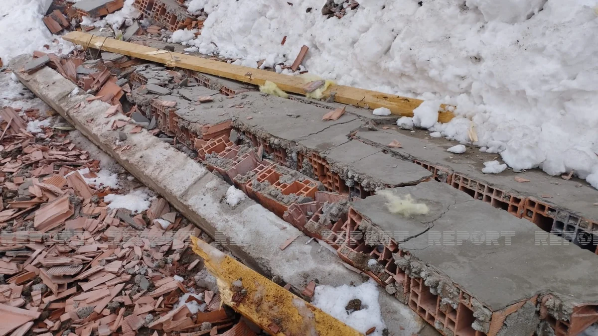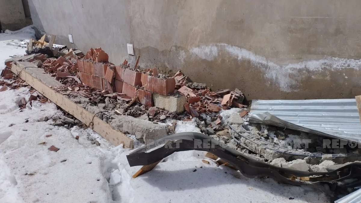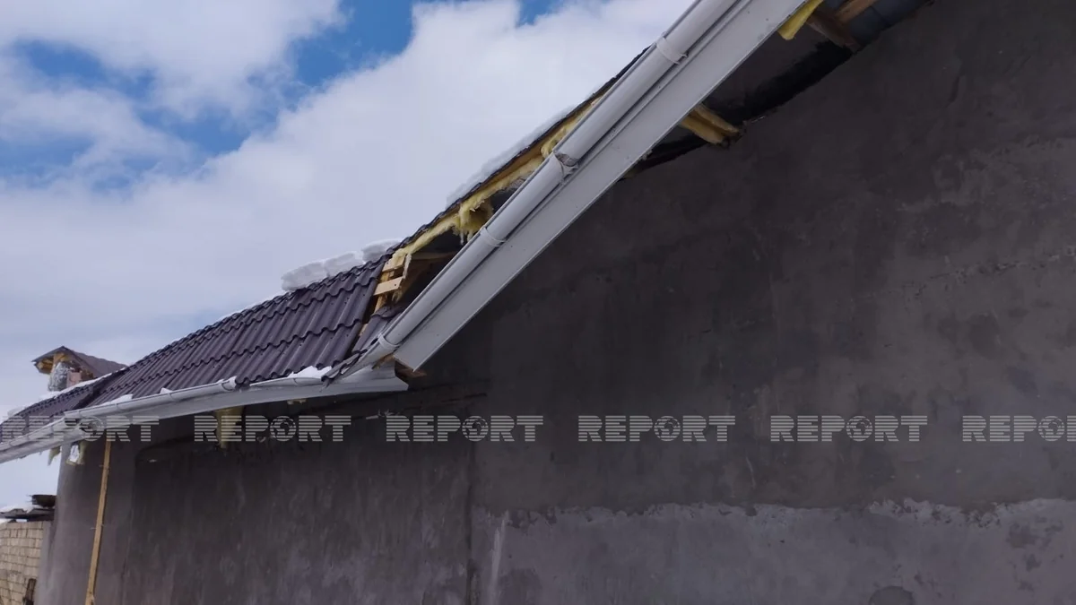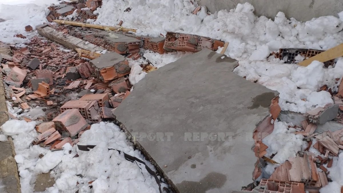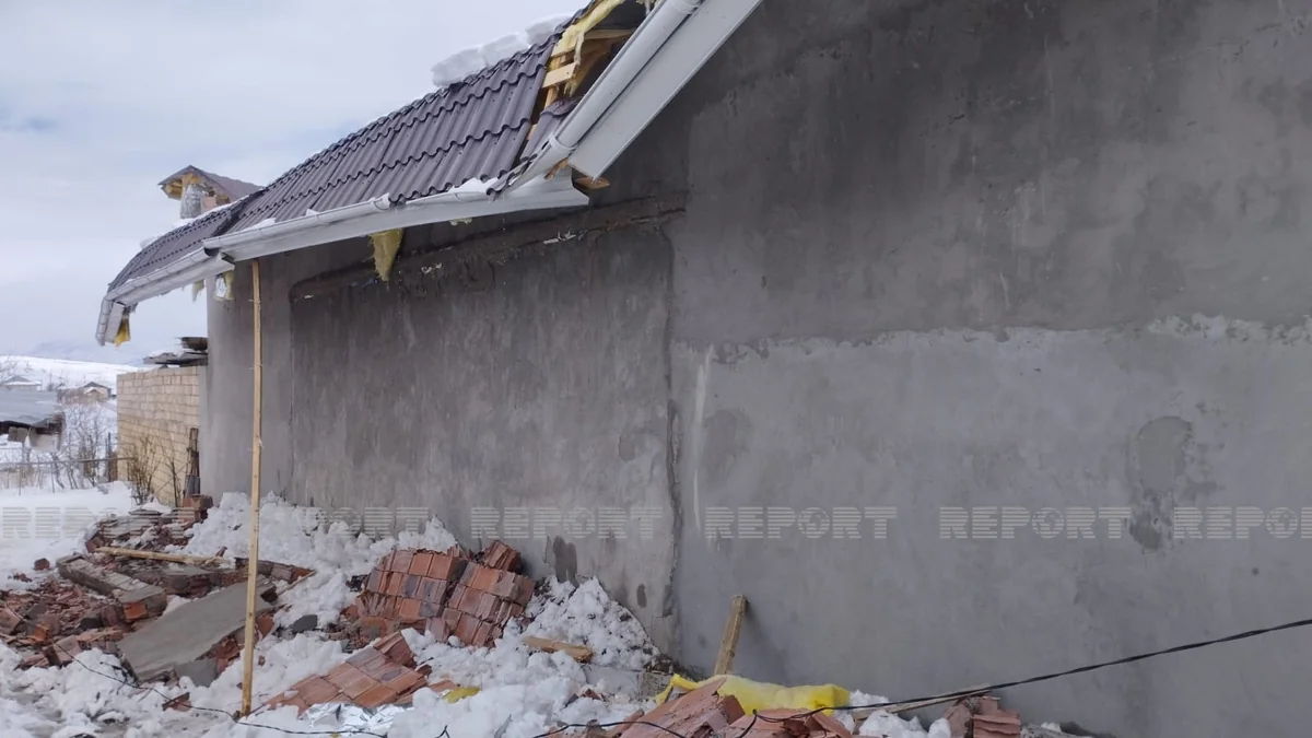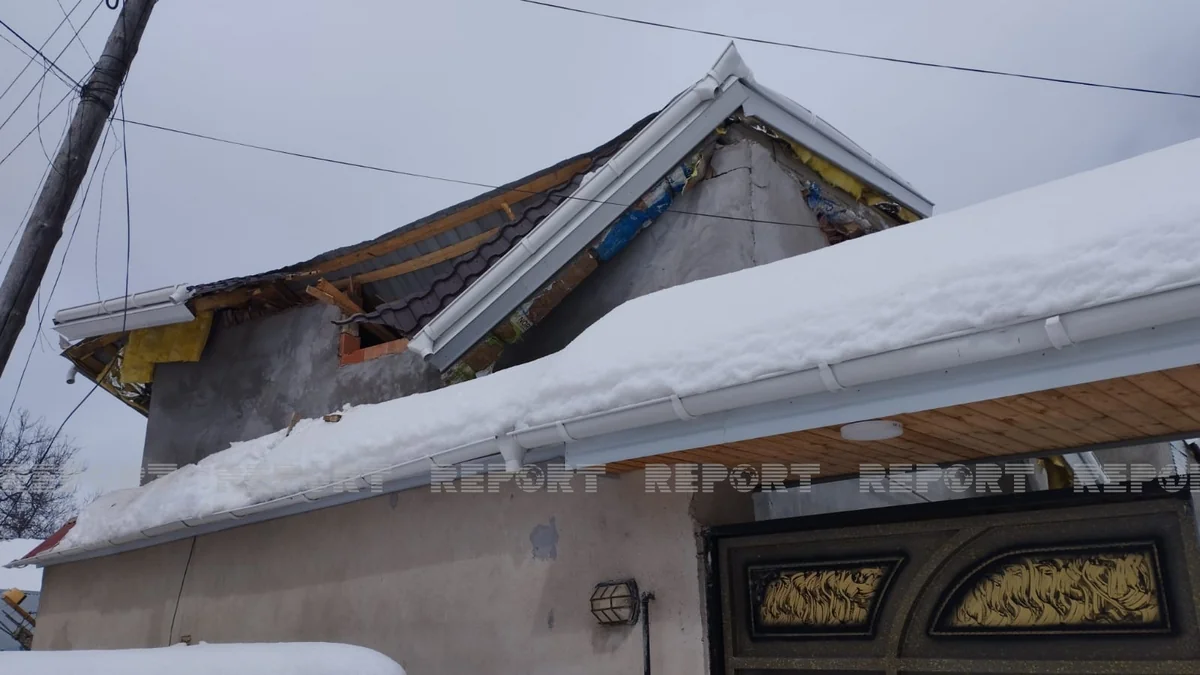 Bir neçə gündür yağan qar Şamaxının Qızmeydan kəndində Cəbrayıl Cəbiyevə məxsus yeni tikilmiş ikimərtəbəli yaşayış evinin dam örtüyünü uçurub.