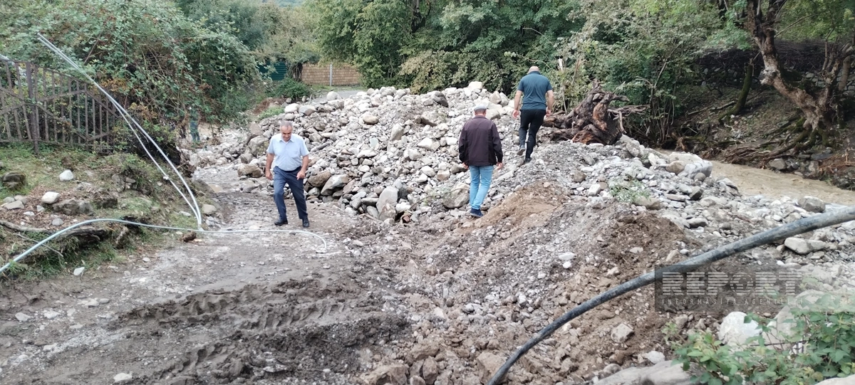 Məktəbə gedən körpünün bir hissəsi çöküb, bir neçə ailənin həyətinə və tövləsinə su dolub. Asfalt yolunun kənarlarını su yuyub, bir neçə elektrik dirəyi sıradan çıxıb.