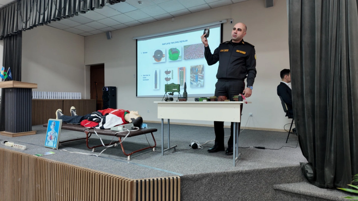 Tədbirlərin nəzəri hissəsində Fövqəladə Hallar Nazirliyinin müvafiq qurumlarının mütəxəssisləri tərəfindən fövqəladə hallar zamanı zəruri davranış qaydaları barədə, o cümlədən əmək təhlükəsizliyinin əhəmiyyəti, mina təhlükəsindən qorunmağın yolları, qaz, elektrik və yanğın təhlükəsizliyi, liftdən istifadə qaydaları, ilk yardım barəsində ətraflı məlumat verilib, suallar cavablandırılıb.