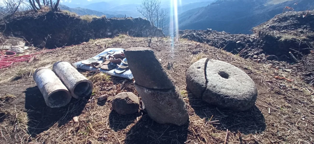 Qazıntı işləri nəticəsində abidələrin siyahısına daxil olmayan və hələlik tarixi haqqında dəqiq məlumatın olmadığı, yonulmuş daşlarından inşa olunmuş tikinti qalıqlarının üstü açılıb. Qazıntı nəticəsində ərazidə saxsı qab fraqmentləri, su boruları və digər artefaktlar üzə çıxarılıb. Ərazinin yüksək dağlıq relyefini nəzərə alaraq qanunsuz qazıntı işlərinin uzun müddət aparıldığını güman etmək olar: