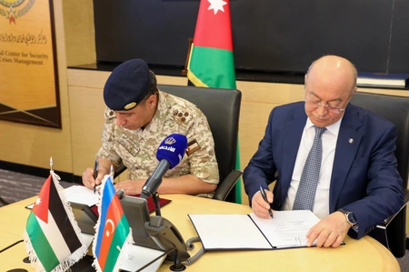 Sonra “Azərbaycan Respublikası Hökuməti ilə İordaniya Haşimilər Krallığı Hökuməti arasında fəlakət və böhranların idarə edilməsi sahəsində əməkdaşlıq haqqında Saziş”in imzalanması mərasimi olub.