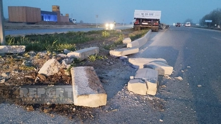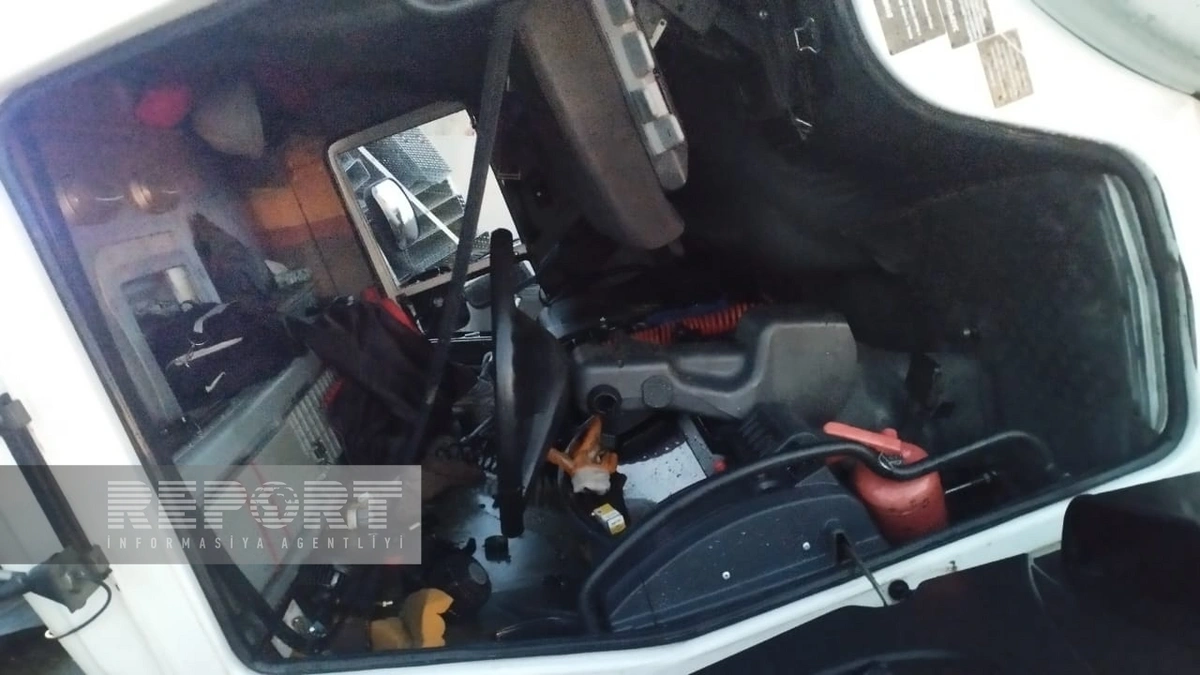 Nəticədə avtomobil yoldan çıxaraq beton səkiyə çırpılıb. Nəticədə nəqliyyat vasitəsində olan yük də yola dağılıb.