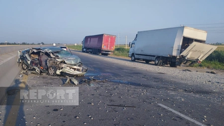 "Report"un Yuxarı Şirvan bürosu xəbər verir ki, Bakı şəhər sakini, 24 yaşlı Xasıyanov Ruslan Əli oğlunun idarə etdiyi “Toyota Prius” markalı avtomobil Gəncə istiqamətində hərəkətdə olarkən yol kənarında dayanmış, Bərdə rayon sakini 26 yaşlı Allahverdiyev Salman Lətif oğluna məxsus “Mercedes” markalı yük maşınına çırpılıb. Nəticədə “Toyota Prius”un sərnişini, 23 yaşlı Mənsimov Elnur Cavanşir oğlu hadisə yerindəcə dünyasını dəyişib.
