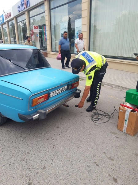 Daxili İşlər Nazirliyinin (DİN) Mətbuat xidmətinin Şirvan regional qrupundan "Report"a verilən məlumata görə, DİN-in tədbirlər planına uyğun olaraq keçirilən tədbirlər zamanı saxlanılan avtomobillərdən ixrac olan zərərli qazların miqdarı yol polisi inspektorları tərəfindən xüsusi cihazlar vasitəsilə yoxlanılıb.
