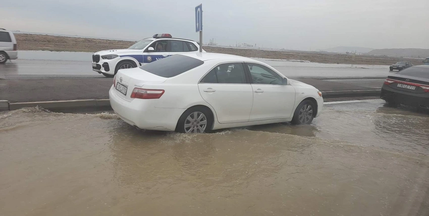 Qaradağ rayonunun Lökbatan qəsəbəsi ərazisində avtomobil yolunu su basıb.