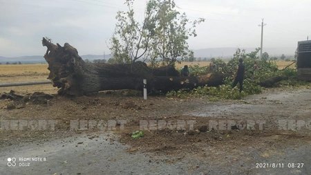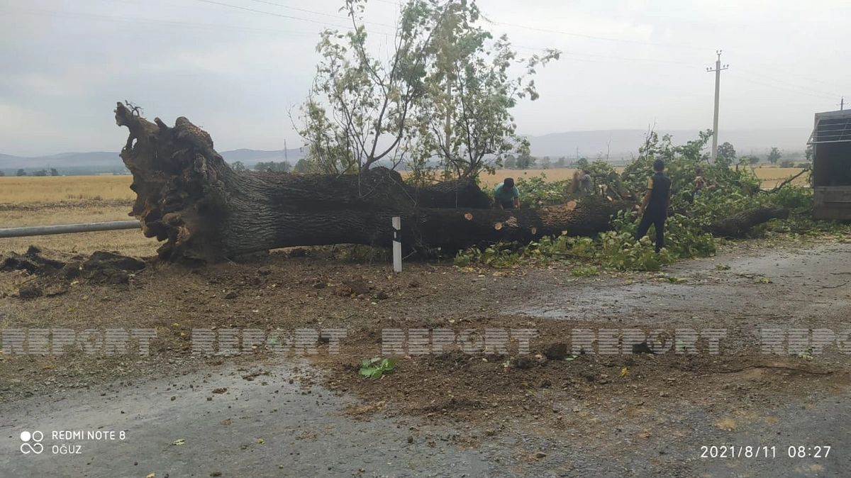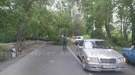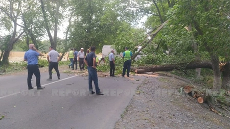 Oğuz rayonunda güclü külək nəticəsində ağaclar yola aşıb.
