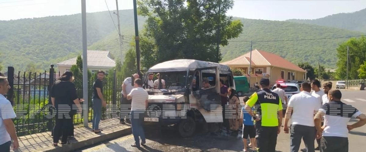 Oğuz rayonunda mikroavtobus yanıb.