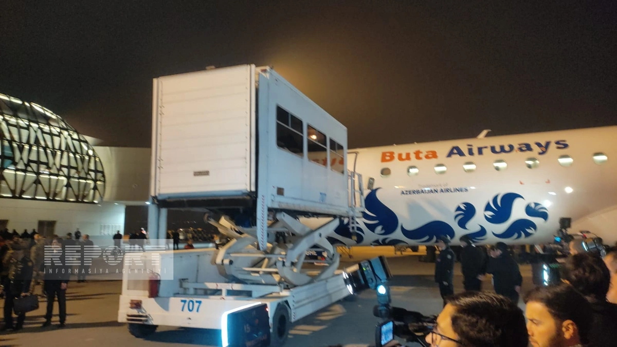 "Report"un əməkdaşının verdiyi məlumata görə, şəhidin cənazəsini gətirən təyyarə Heydər Əliyev adına Hava Limanında eniş edib.