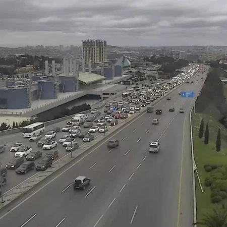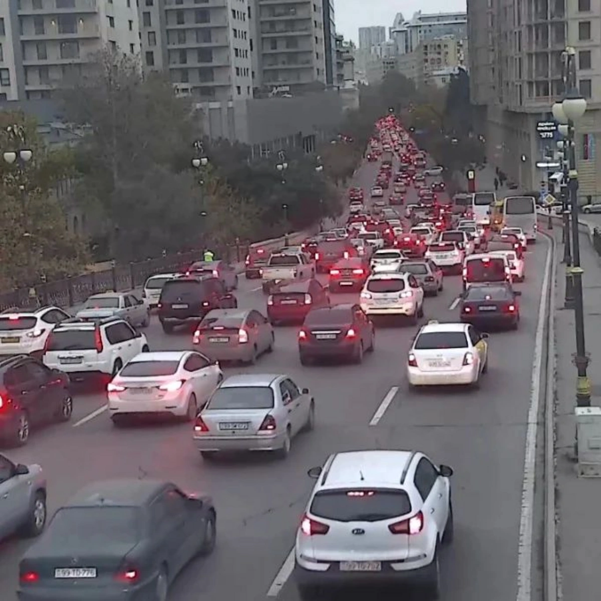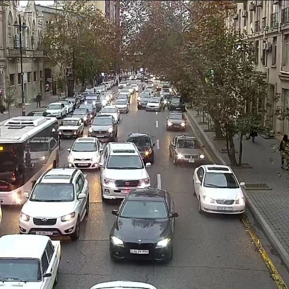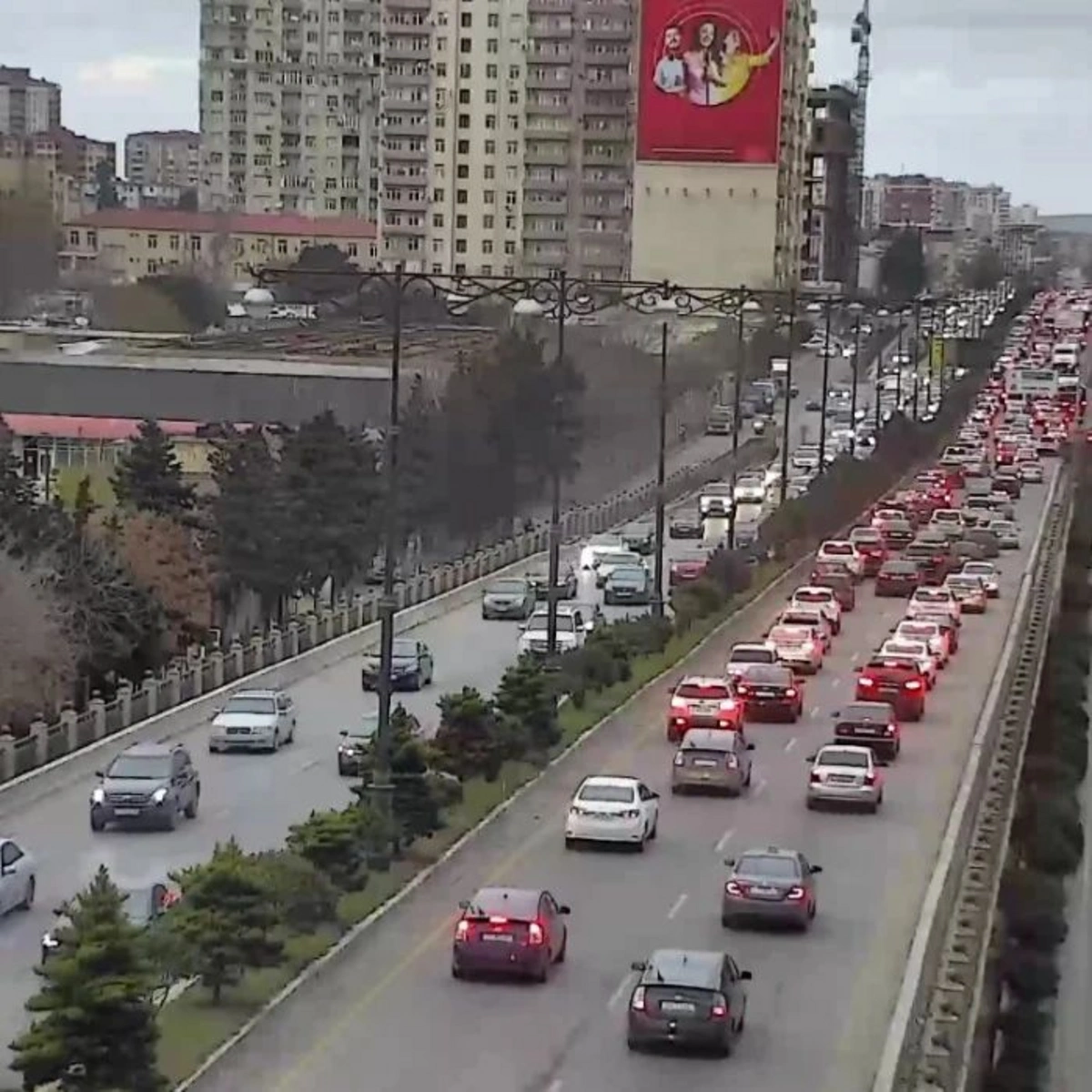 16. Yusif Səfərov küçəsi, Heydər Əliyev prospekti istiqamətində sıxlıq müşahidə olunur.