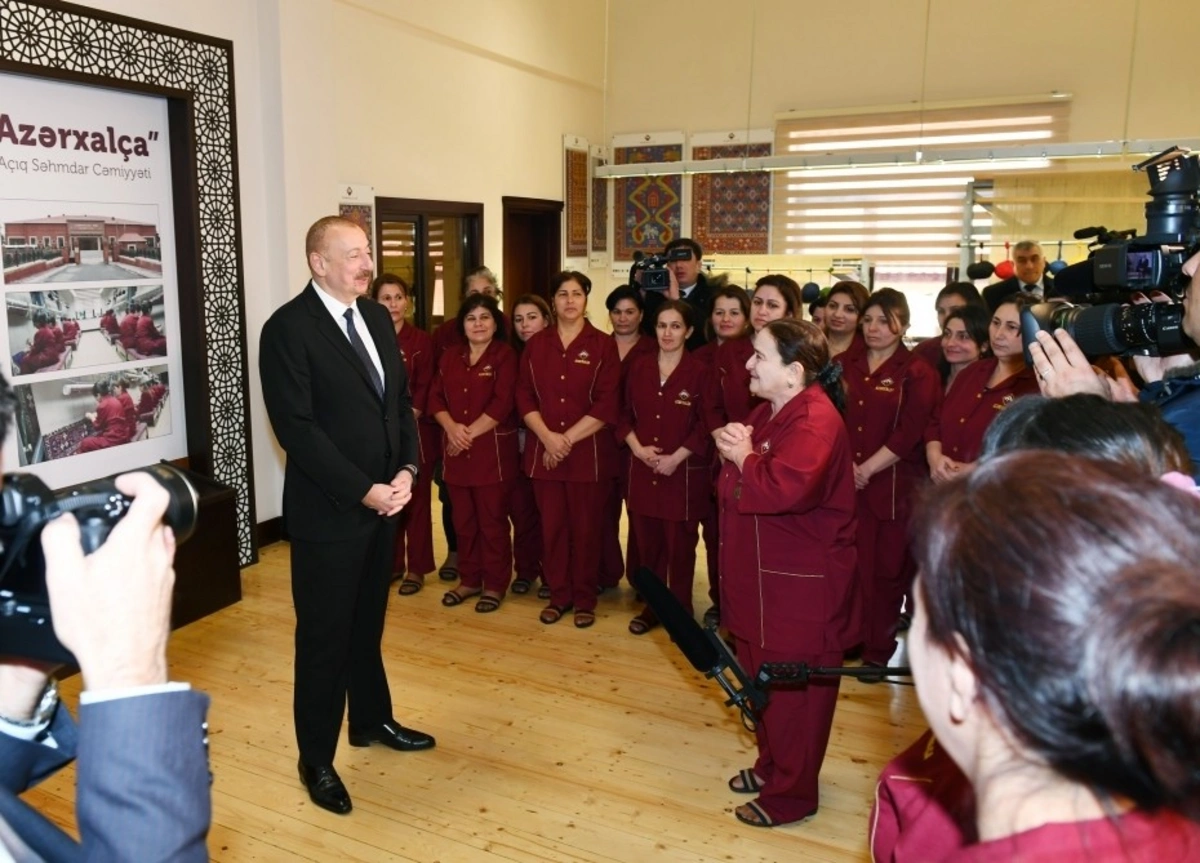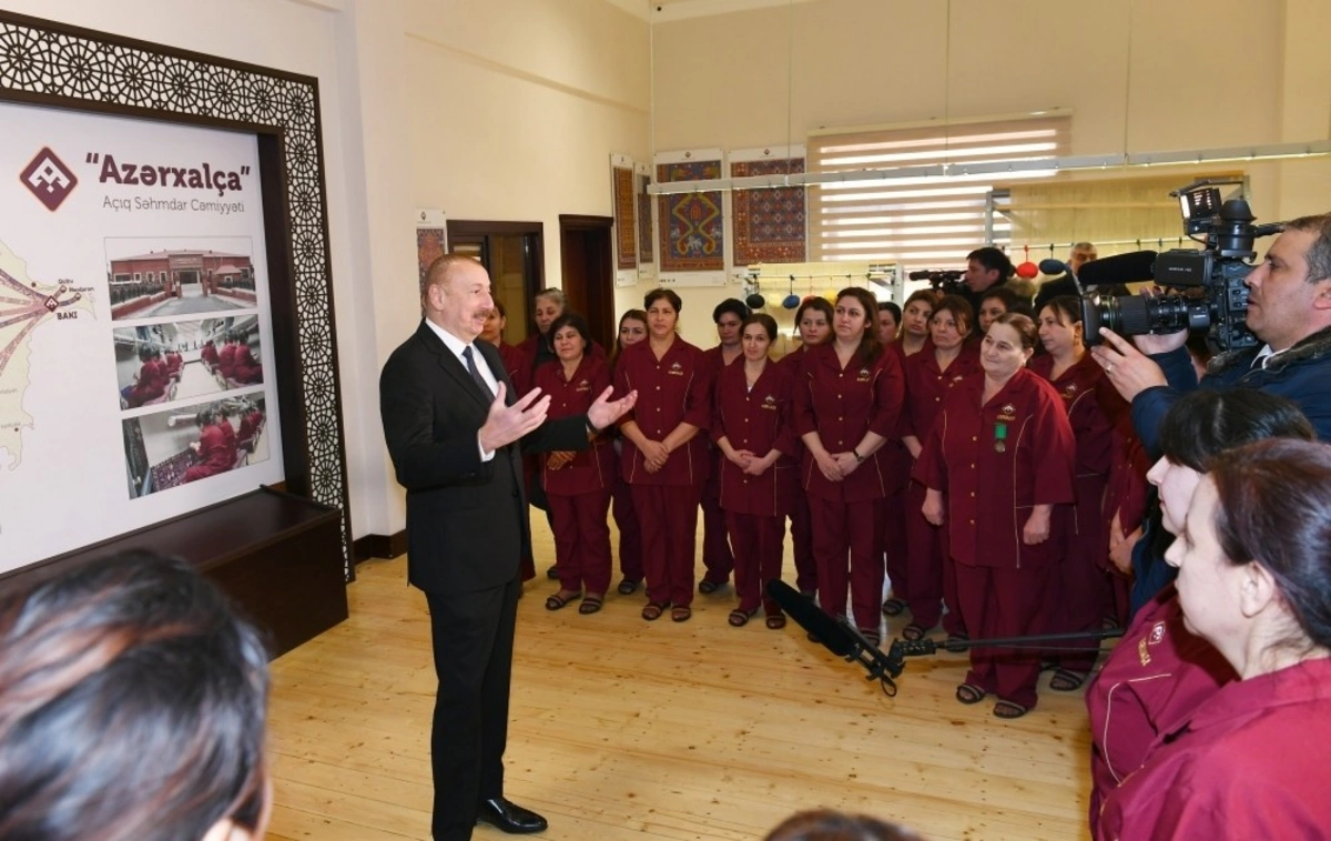 Prezident İlham Əliyev filialda işləyən xalçaçılarla görüşüb.