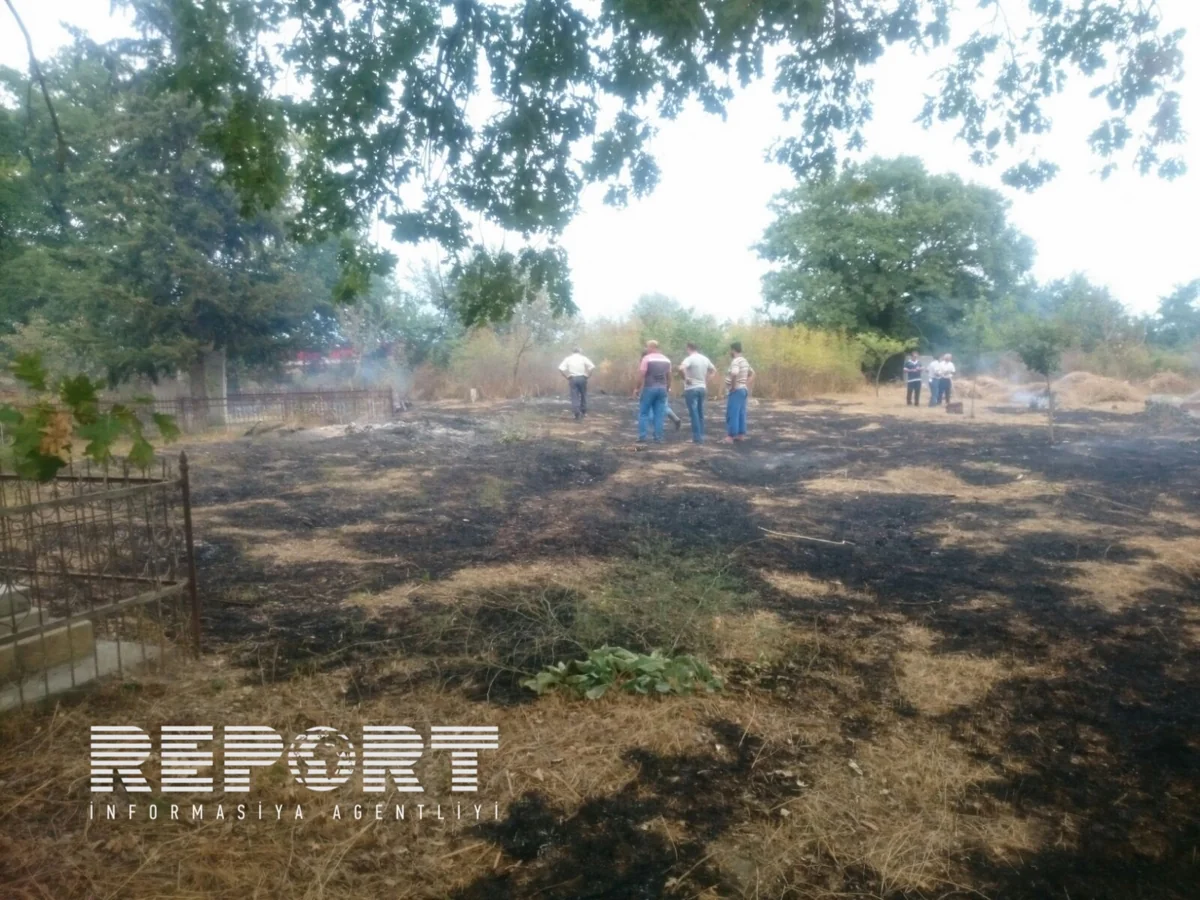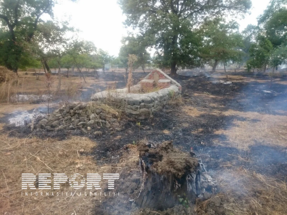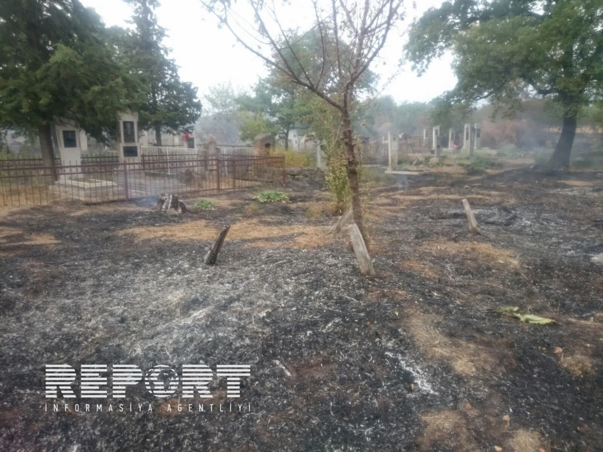 Qaxda kənd qəbiristanlığında yanğın baş verib - FOTO