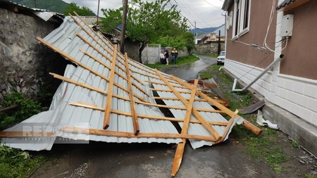 “Report”un Şimal-qərb bürosunun məlumatına görə, rayonun Qaxingiloy kəndində yağışla müşahidə olunan güclü külək kənd sakini, 1954-cü il təvəllüdlü Kulaşvili Varabyonun evinin dam örtüyünü qopardaraq qonşu həyətə atıb.