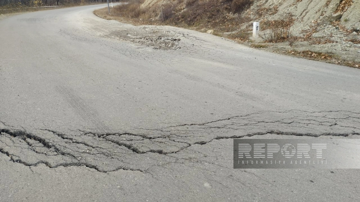 Yolun bir neçə hissəsi dağılıb, asfalt örtüyündə çökmələr və yolun ortasında iri çatlar əmələ gəlib. Dörd kəndi birləşdirən, turizm əhəmiyyətli bu yolda üçüncü dəfədir ki, torpaq sürüşməsi baş verir.