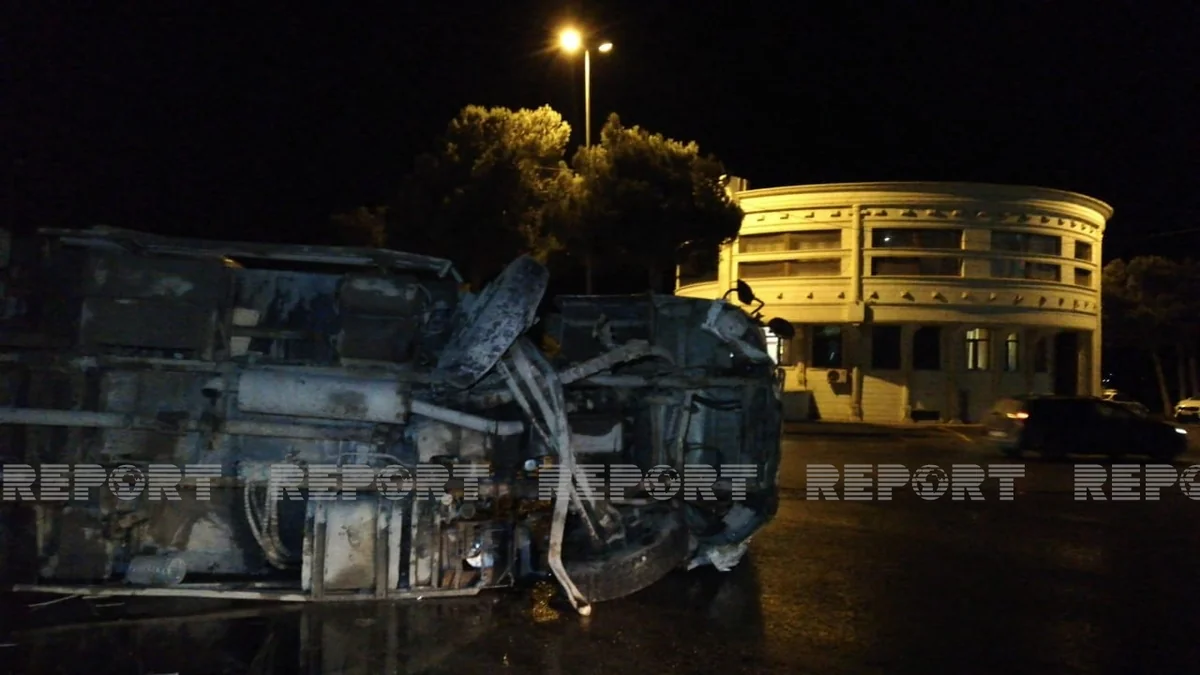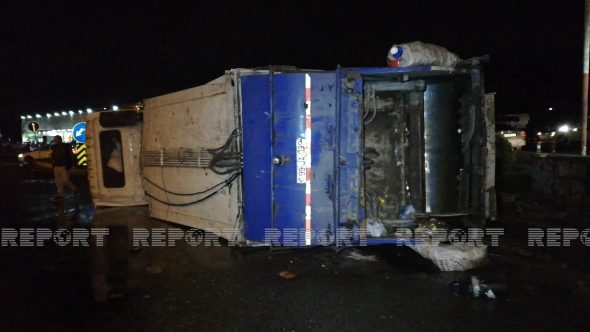 Nəticədə məişət tullantıları daşıyan yük maşını beton arakəsməyə çırpılaraq aşıb.