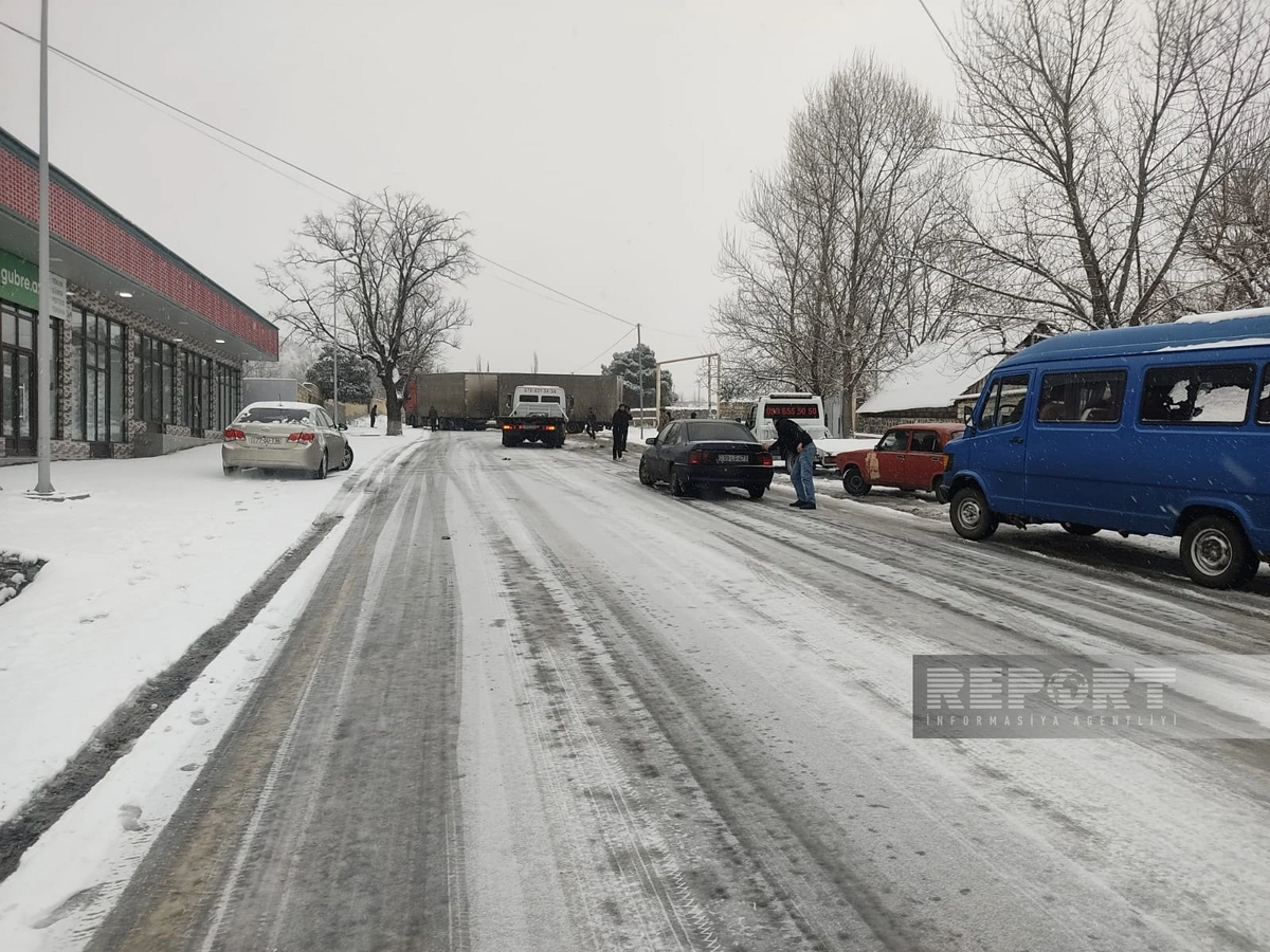 Əsasən yük avtomobillərinin hərəkəti çətinləşib. Yolda qalan avtomobillər yolun hərəkət hissəsindən çıxarılıb.