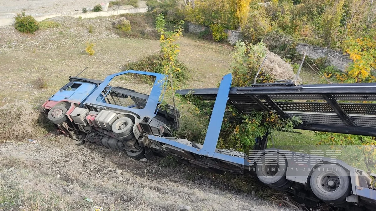 Şəki-Qax avtomobil yolunun 9-cu kilometrliyində, Şəki rayonun İnçə kəndi ərazisində “TIR” qəzaya uğrayaraq dərəyə aşıb.