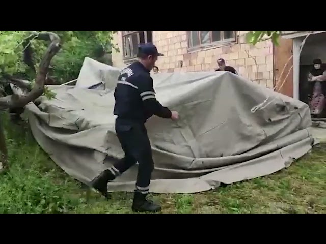 Bununla əlaqədar FHN-in Şimal Regional Mərkəzinin əməkdaşları tərəfindən evləri təhlükəli vəziyyətə düşmüş Sədan kənd sakinləri üçün müvəqqəti yaşayış məqsədilə iki ədəd çadır qurularaq vətəndaşlara təhvil verilib.