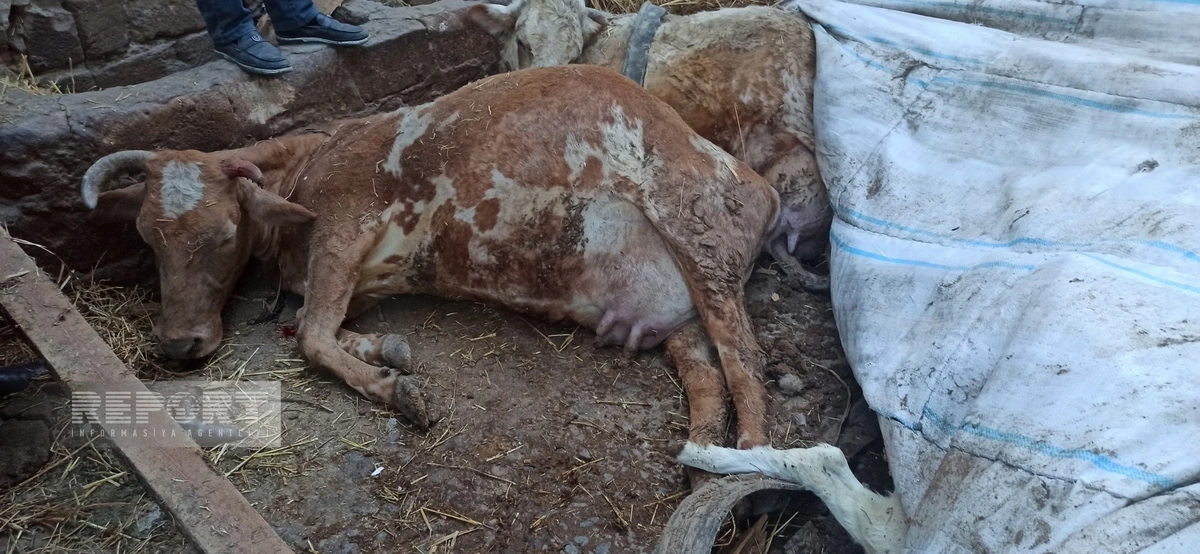 Ferma sahibi Yadigar Abbasov bildirib ki, tələf olan heyvanların 12-si iribuynuzlu, 4-ü isə buzovdur.