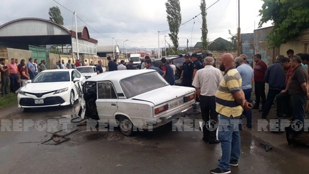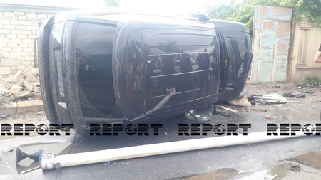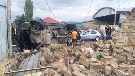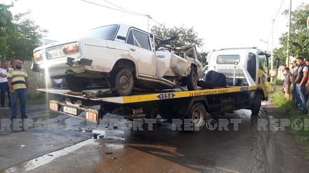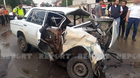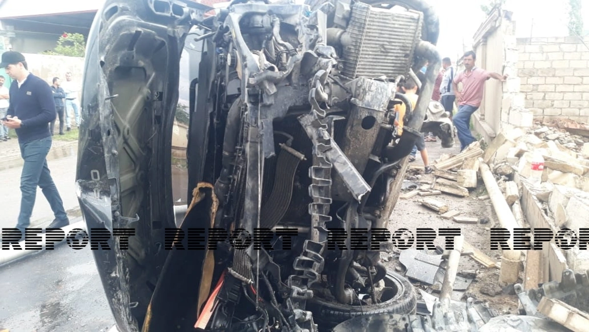 "Report"un Qərb Mərkəzinin məlumatına görə, rayonun Həzi Aslanov küçəsində hərəkətdə olan "Range Rover" markalı avtomobil qarşıdan gələn "VAZ-2106" markalı avtomobillə toqquşub, sonra yoldan çıxaraq, yaşayış evinin hasarına çırpılıb və zərbənin gücündən aşıb.