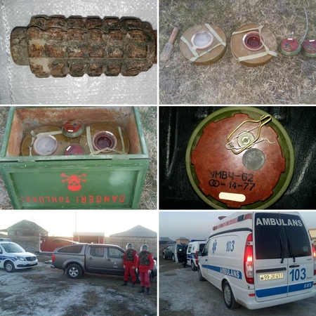 Agentliyin mütəxəssisləri tərəfindən aparılan təcili təxirəsalınmaz əməliyyat-axtarış tədbirləri nəticəsində 2 ədəd təlim məqsədli tank əleyhinə mina (UTM-62P3), 2 ədəd təlim məqsədli tank əleyhinə minanın partladıcısı (UMVÇ-62) və 1 ədəd tərkibində partlayıcı maddə olan piyada əleyhinə mina (POMZ-2) aşkar olunub, zərərsizləşdirilməsi üçün götürülərək Agentliyin mərkəzi məhvetmə ərazisinə daşınıb.