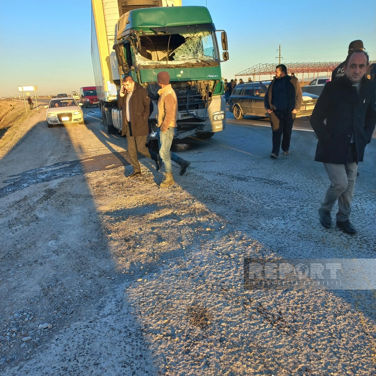 Şəmkir rayon sakini 1959-cı il təvəllüdlü Şəmistan Aqil oğlu İsayevin idarə etdiyi "Mersedes sprinter" markalı mikroavtobusla Abşeron rayon sakini, 1957-ci il təvəllüdlü Asif Balağa oğlu Hüseynovun idarə etdiyi TIR toqquşub.