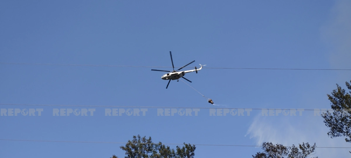 "Report" xəbər verir ki, nazirliyin Aviasiya dəstəsinin iki helikopteri və “BE-200ÇS” amfibiya tipli təyyarəsi yanğınsöndürmə işlərinə cəlb olunub.