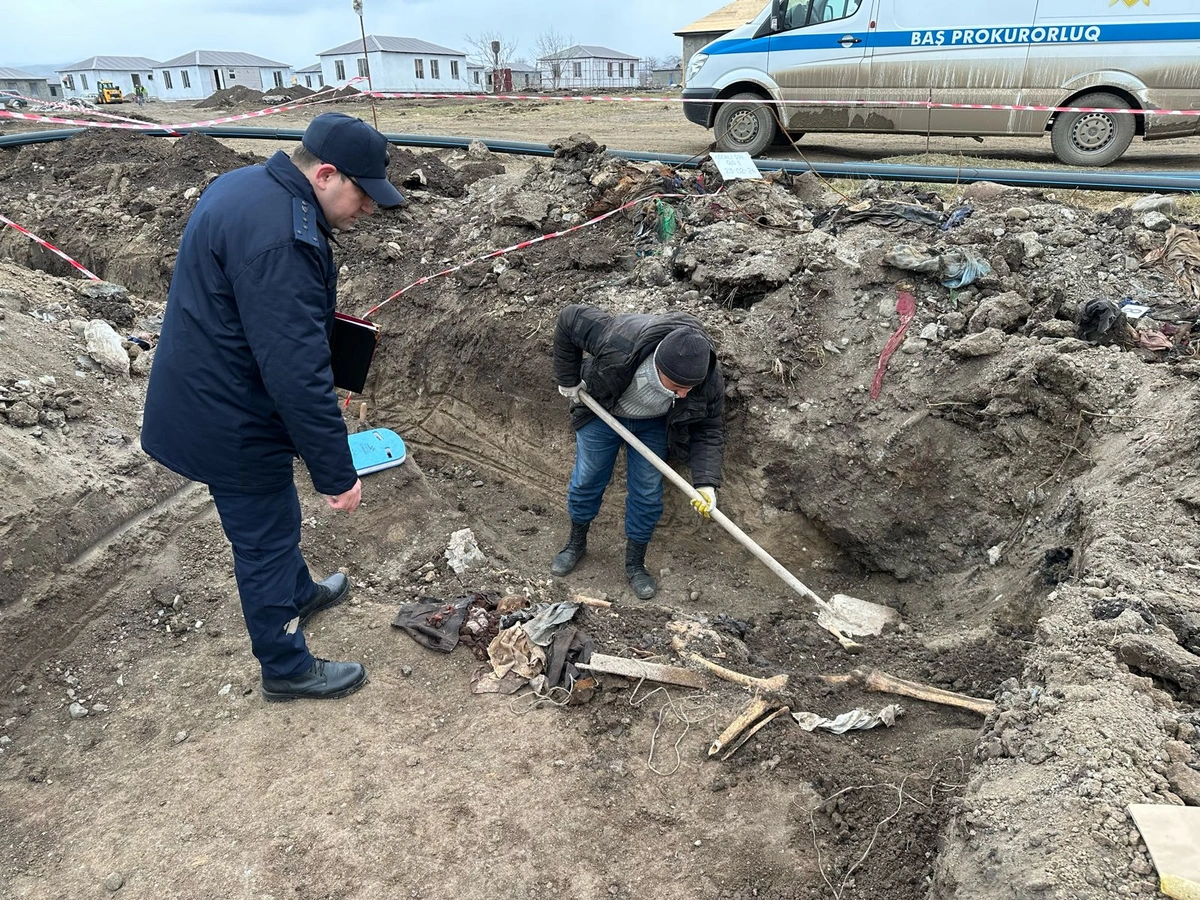 "Baş Prokurorluğunun peşəkar əməkdaşları hadisə yerinə ezam olunmaqla, Səhiyyə Nazirliyinin “Məhkəmə-Tibbi Ekspertiza və Patoloji Anatomiya Birliyi” Publik Hüquqi Şəxsi, Azərbaycan Milli Elmlər Akademiyası, Əsir və itkin düşmüş, girov götürülmüş vətəndaşlarla əlaqədar Dövlət Komissiyası və Beynəlxalq Qızıl Xaç Komitəsinin (BQXK) Azərbaycan Nümayəndəliyinin əməkdaşlarının iştirakı ilə hadisə yerinə baxış keçirilərək aşkar edilmiş sümük fraqmentləri ekspertiza və laborator müayinələrin aparılması məqsədilə müvafiq qaydada götürülüb, eləcə də digər zəruri prosessual hərəkətlər yerinə yetirilib".