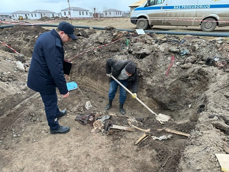 Məzarlıqda insan sümükləri və müxtəlif geyim əşyaları aşkarlanıb.