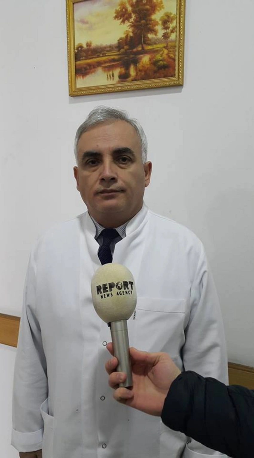 Onun sözlərinə görə, xəstə III A,B və IV dərəcəli xəsarətlər alıb: "Bədən səthinin 90 faizi və tənəffüs yollarının 15 faiz yanığı diaqnozu ilə daxil olub. Xəstənin ümumi vəziyyəti çox ağırdır və hazırda reanimasiyada müalicəsi davam edir. Huşu aydındır. Xəstənin dediyinə görə, səhər işlədiyi dükanın qapısını açaraq içəri daxil olub və işığı yandırarkən partlayış baş verib. Sarğı olunub, yarası təmizlənib, ağrıkəsicilər vurulub, antibakterial terapiya aparılır".