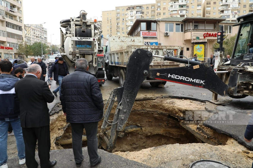 "Azərsu": "Bakıda magistral su kəmərindəki qəza aradan qaldırılıb" - VİDEO - YENİLƏNİB-5