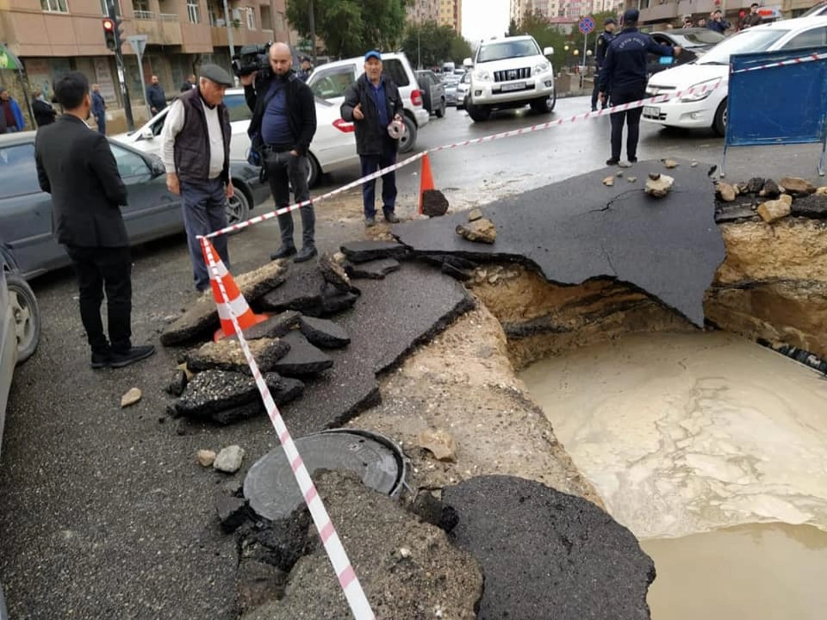 Bakıda magistral su kəmərində qəzanın baş verdiyi ərazidə asfalt və səkilər yuyulur.