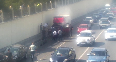 Yasamal rayonu, Moskva prospekti (tunelin çıxış hissəsində) hərəkətdə olan yük avtomobilində yanğın baş verib.