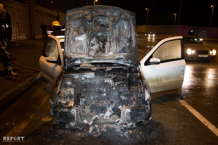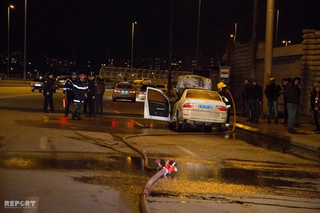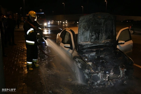 “Report” xəbər verir ki, yanğın taksi fəaliyyəti ilə məşğul olan "10-TD-109" dövlət qeydiyyat nişanlı maşının mühərrik hissəsində qəfil alışma nəticəsində baş verib.