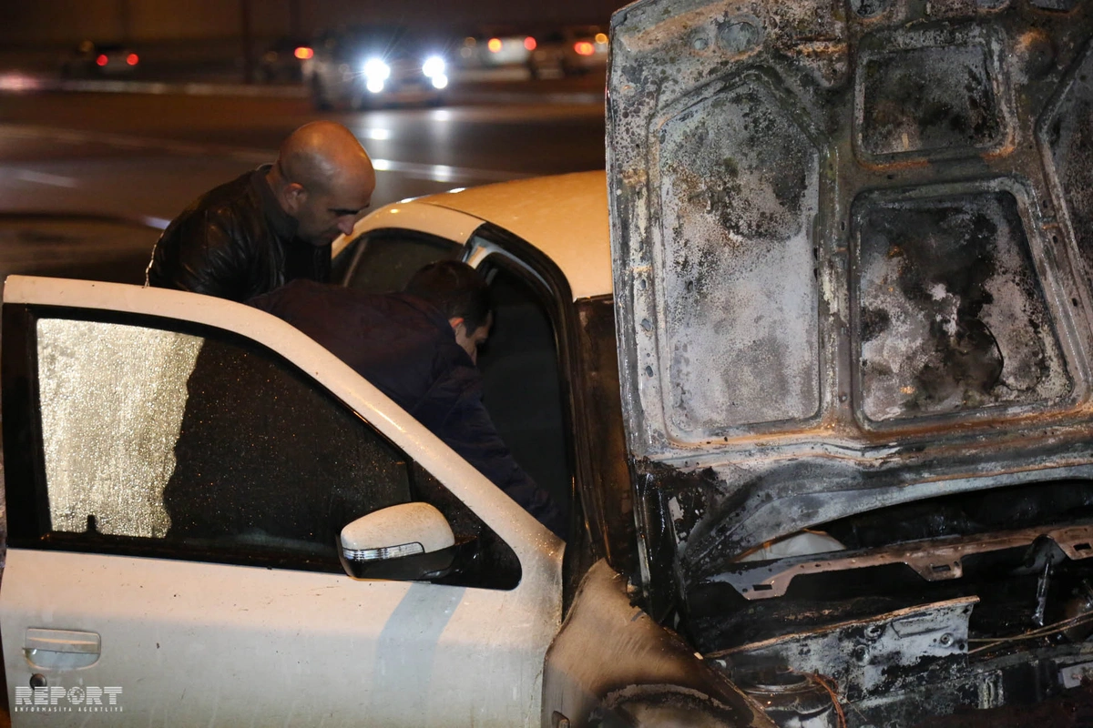 Ziya Bünyadov prospektində minik maşını yanıb - FOTO - VİDEO
