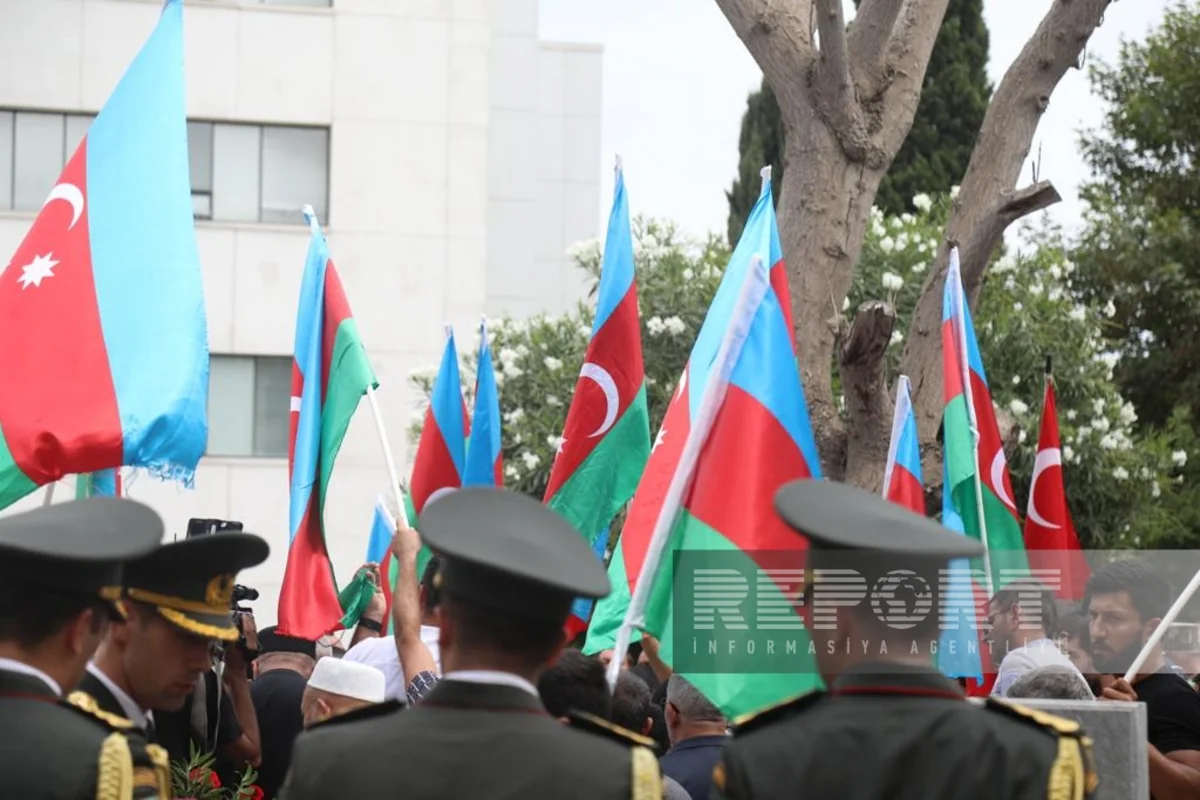 "Report" xəbər verir ki, mərhum yaylım atəşi və Dövlət Himninin sədaları altında torpağa tapşırılıb.