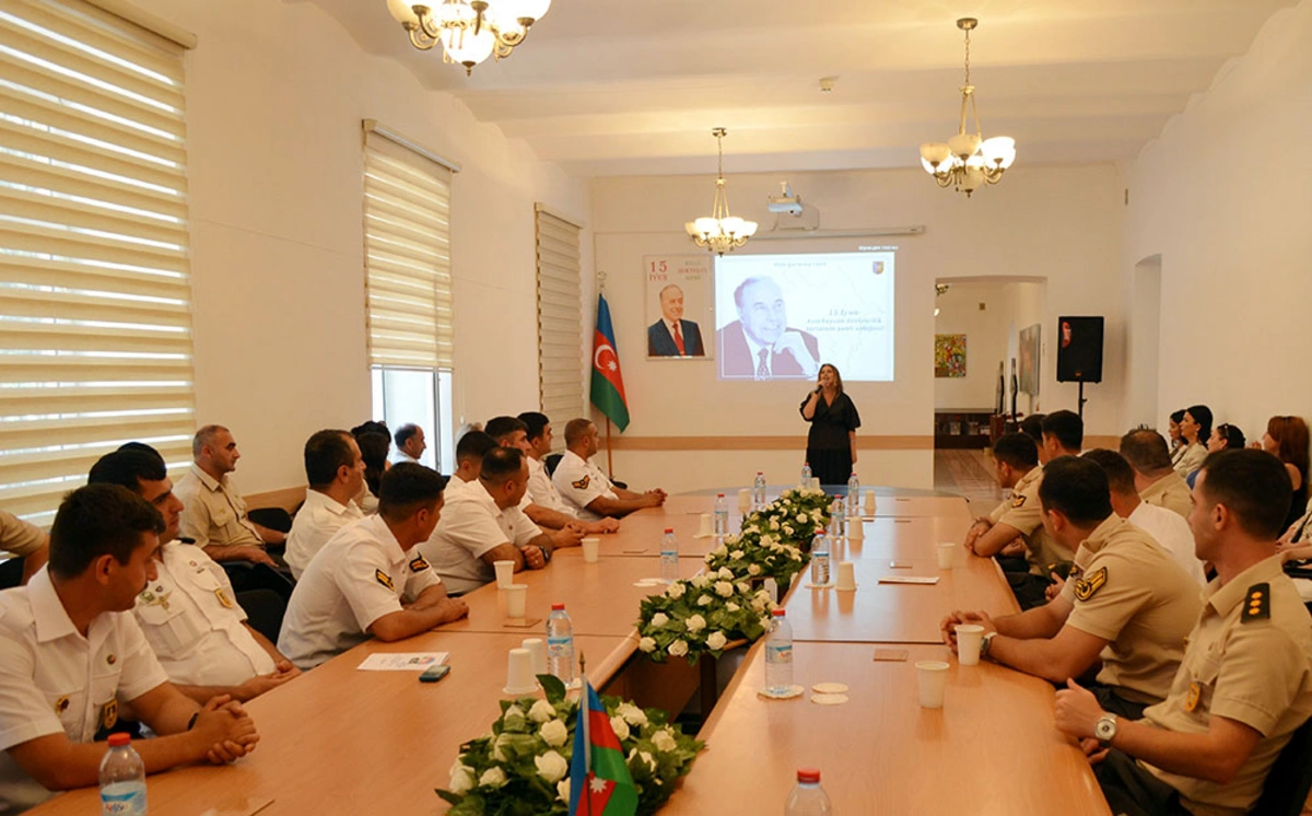 Bayram günündə şəxsi heyət ölkə ərazisindəki Heydər Əliyev mərkəzlərini, muzeyləri və abidələri ziyarət edib, dahi şəxsiyyətin şərəfli həyat yolu və fəaliyyətindən bəhs edən filmləri izləyib.