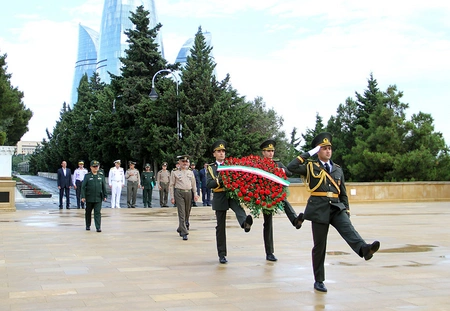 Əvvəlcə iranlı qonaqlar Şəhidlər xiyabanında ölkəmizin müstəqilliyi və ərazi bütövlüyü uğrunda şəhid olmuş vətəndaşlarımızın məzarlarını ziyarət edərək “Əbədi məşəl” abidəsinin önünə əklil qoyublar.