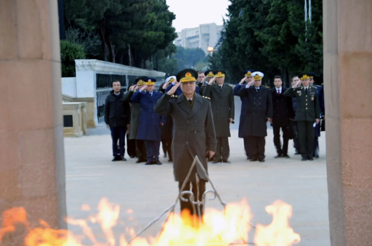 Şəhidlər xiyabanına gələn nümayəndə heyətləri ölkəmizin azadlığı və suverenliyi uğrunda mübarizədə canlarından keçmiş qəhrəman Vətən övladlarının xatirəsini ehtiramla yad edib, “Əbədi məşəl” abidəsinin önünə əklil qoyublar. Sonra Şəhidlər xiyabanında şəhid türk əsgərlərinin xatirəsinə ucaldılmış “Türk Şəhidliyi” abidəsi önünə əklil qoyulub.