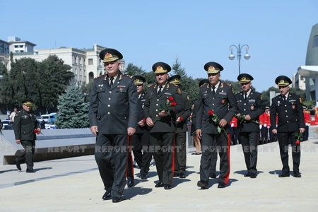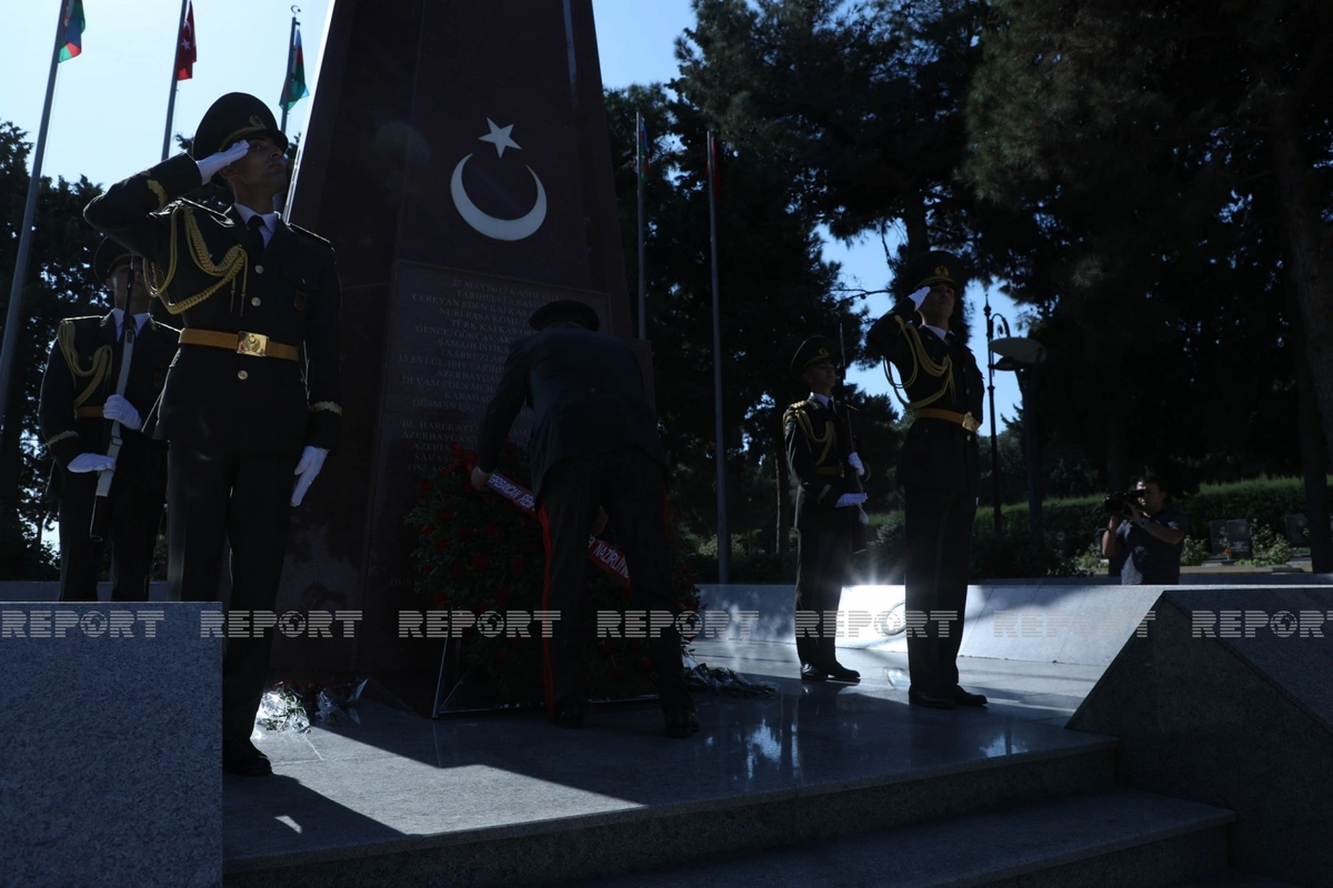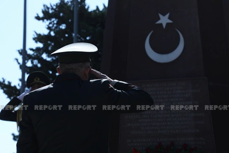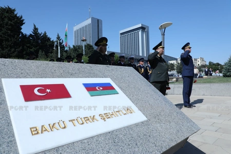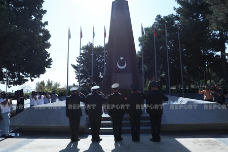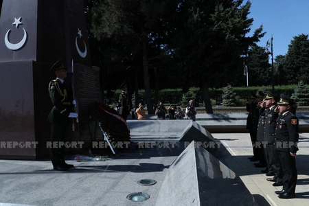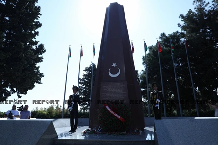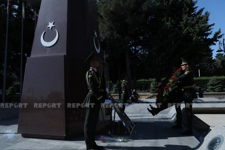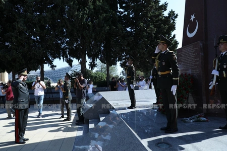 Azərbaycan və Türkiyə ordusunun bir qrup generalı Türk şəhidləri abidəsinin önünə əklil qoyublar.