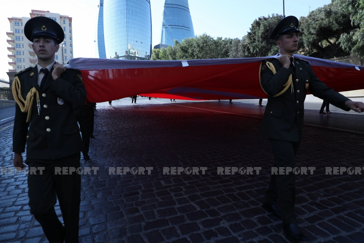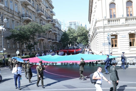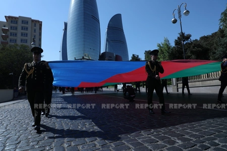 "Azərbaycan-Türkiyə qardaşlığı əbədi və sarsılmazdır" devizi altında keçirilən yürüş İçərişəhər metrosu-İqtisadiyyat Universitetinin binası-Qala Qapısı-“AzNeft” dairəsi-Bəhram Gur heykəli marşrutu ilə davam edəcək.