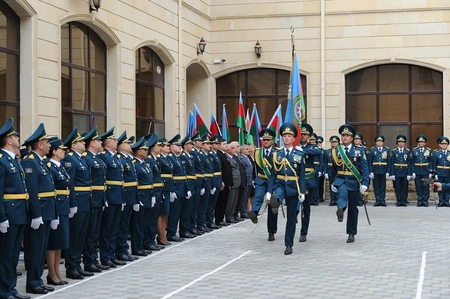 Tədbir çərçivəsində Dövlət Sərhəd Xidməti rəisinin Silahlı Qüvvələrin ehtiyatına buraxılmış sabiq müavinləri general-leytenant Azad Ələkbərov və general-leytenant İsmayıl Əkbərov Dövlət Sərhəd Xidmətinin döyüş bayrağı ilə vidalaşıblar