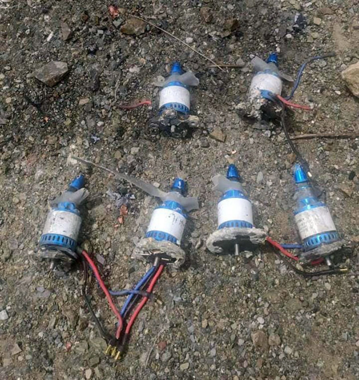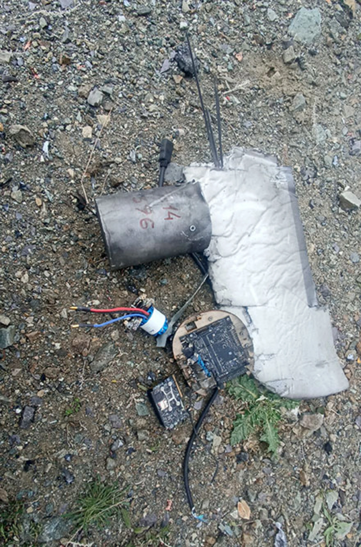 Təqdim olunan foto materiallarda zərbə PUA-larının qalıqları əks olunur.