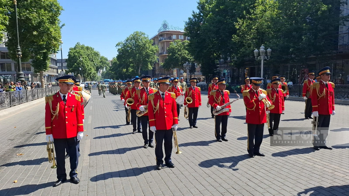 "Report"un Qərb bürosunun məlumatına görə, Azərbaycan Respublikasının Silahlı Qüvvələrinin yaradılmasının 107-ci ildönümü ilə əlaqədar olaraq Gəncədə bu dəqiqələrdə hərbi orkestrin müşayiəti ilə hərbi qulluqçuların təntənəli yürüş keçirilib.