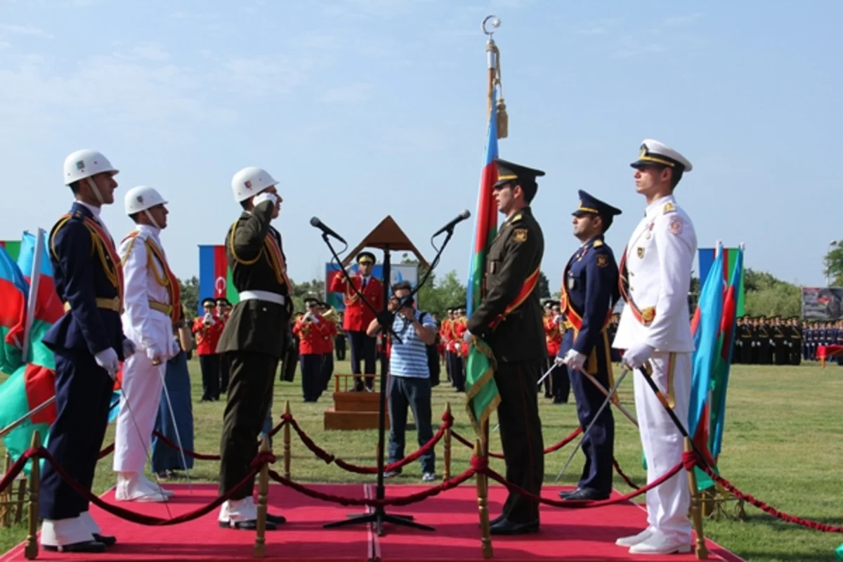 Daha sonra Heydər Əliyev adına Azərbaycan Ali Hərbi Məktəbinin döyüş bayrağının təhvili və qəbulu olub.
