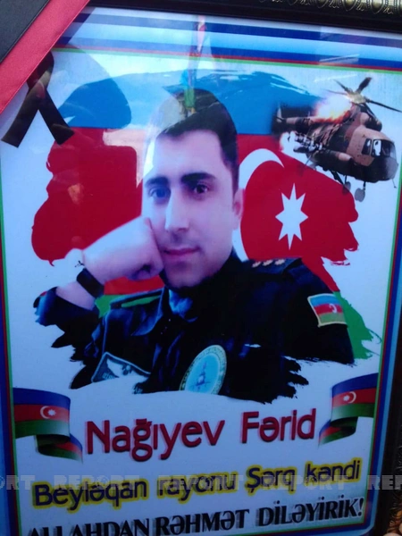 Dövlət Sərhəd Xidmətinin (DSX) hərbi helikopterin qəzaya uğraması nəticəsində həlak olan hərbi qulluqçulardan biri - baş leytenant Fərid Nağıyevin cənazəsi Beyləqan rayonunun Şərq kəndinə gətirilib.