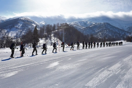 Gürcüstanın Bakuriani bölgəsində qış dağ təlimi keçirilir.