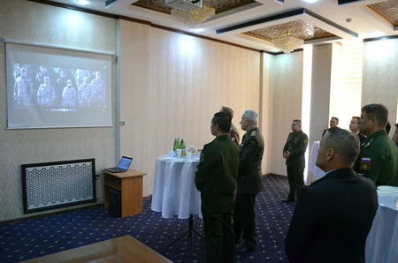 Əvvəlcə qonaqlara DİN DQ-nin Ali Hərbi Məktəbinin tarixi və əsas fəaliyyət istiqamətləri barədə brifinq təqdim olunub.
