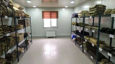 Müdafiə nazirinə məruzə olunub ki, modul tipli yerləşmə məntəqəsi hərbi qulluqçuların bütün zəruri ehtiyaclarını təmin etmək məqsədilə müasir avadanlıq, mebel və inventarlarla təchiz edilib. Burada silah otağı, yataqxana, yeməkxana, mətbəx, tibb məntəqəsi, ərzaq və əşya anbarları, hamam-sanitar qovşağı və fasiləsiz elektrik enerjisi ilə təmin edən generatorlar mövcuddur. Kompleks mərkəzləşdirilmiş istilik sistemi, işıq və su ilə təchiz edilib.