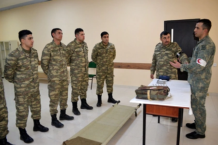 Məşğələlər tibb hazırlığı üzrə şəxsi heyətin maarifləndirilməsi və fəaliyyətlər zamanı ilkin tibbi yardımın düzgün və vaxtında göstərilməsi üçün praktiki məşqlərin yerinə yetirilməsi ilə davam edib.