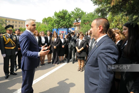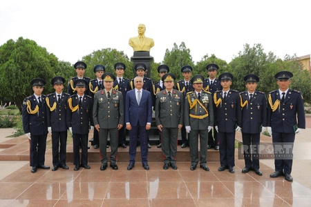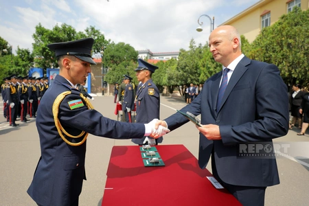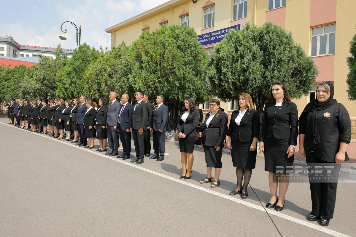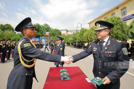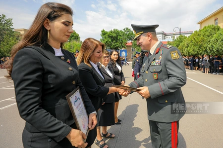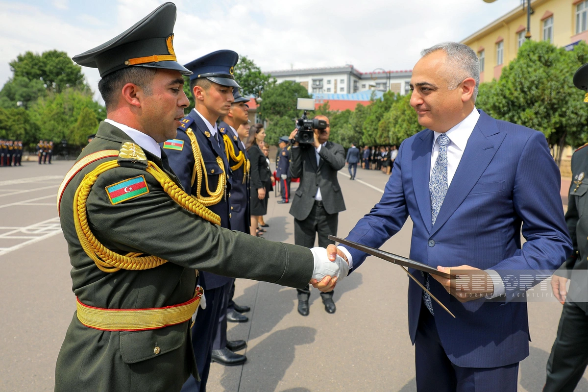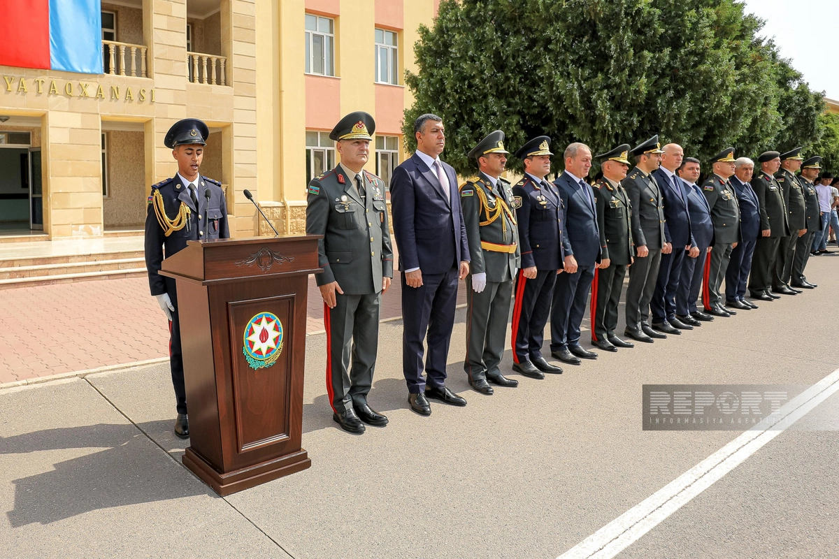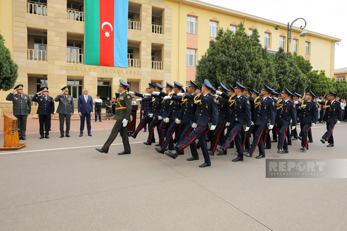 Sonra döyüş bayrağı növbəti buraxılışın kursantlarına təhvil verilib. Orkestrin müşayiətilə hərbi liseyin marşı ifa edilib, şəxsi heyət təntənəli marşın sədaları altında nizami addımlarla tribunanın önündən keçib.